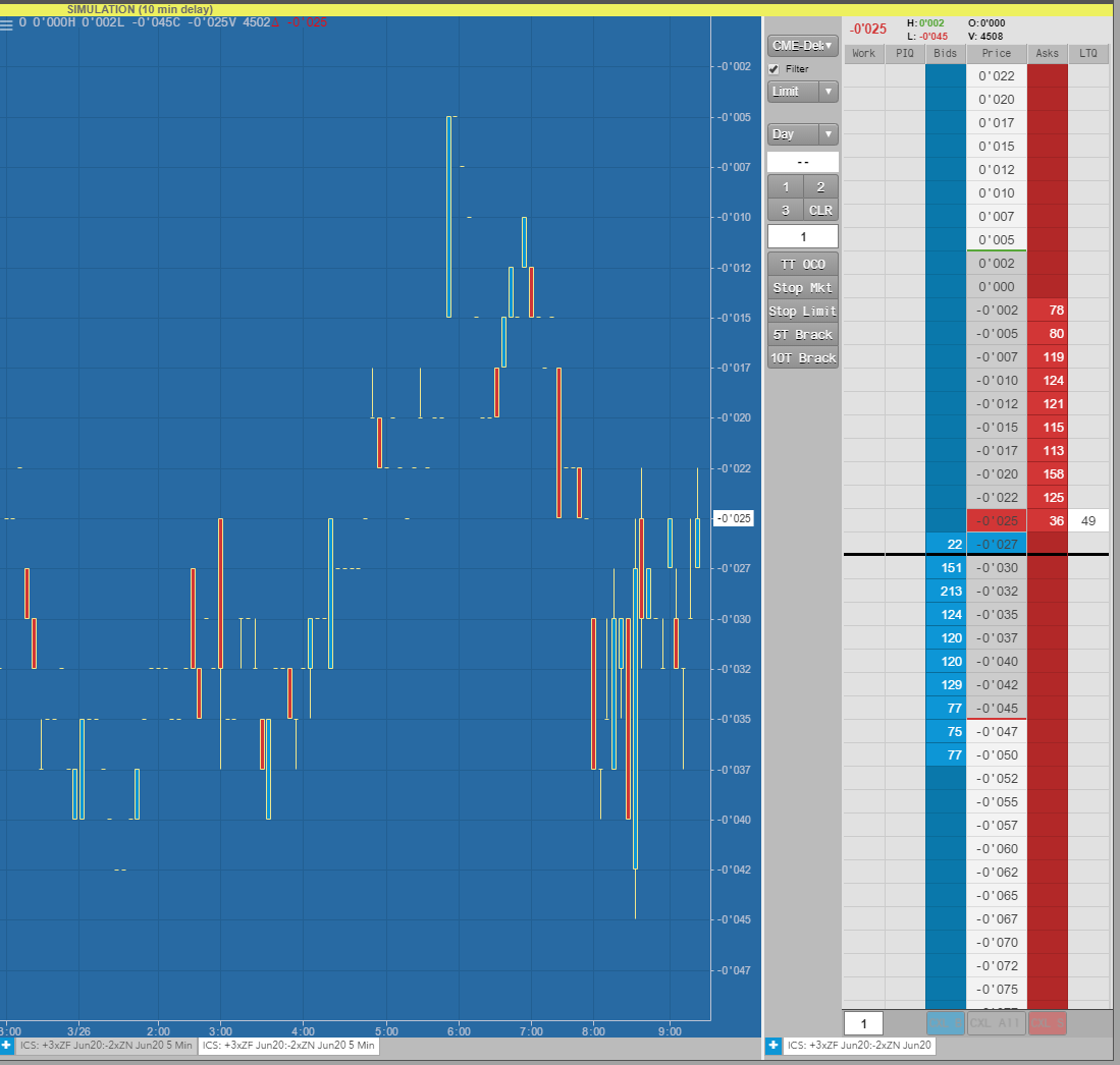 I am charting the FYTM20 spread and it charts. The values don't match my CQG platform. It might be my price format sittings.. though I have set to automatic, they still don't match For example: on my Sierra FYTM20 5 min chart, the high at 7:05 EST on 3/25 is 0'7 on my CQG platform (which is the right value since I have crossed checked this), the value is 0-01'7 As you know these are netchange values, they are not even close It might be that I have to adjust the chart price format or something else in Sierra.. it needs to match. This is an exchange spread If this is a CQG issue and will display correctly with TT feed, please also let me know thanks |