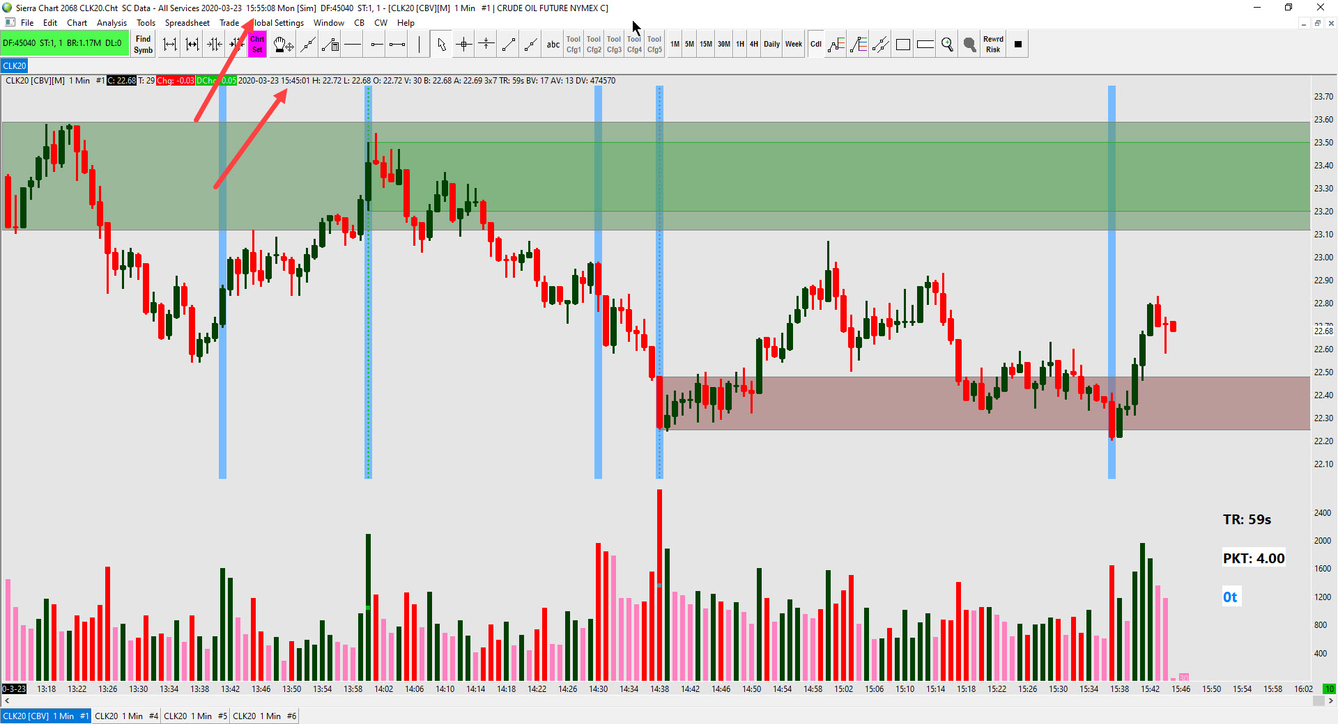Why is the time on chart CLK20 different? how can I set real time to chart? I have purchased package 5. I attached a screenshot