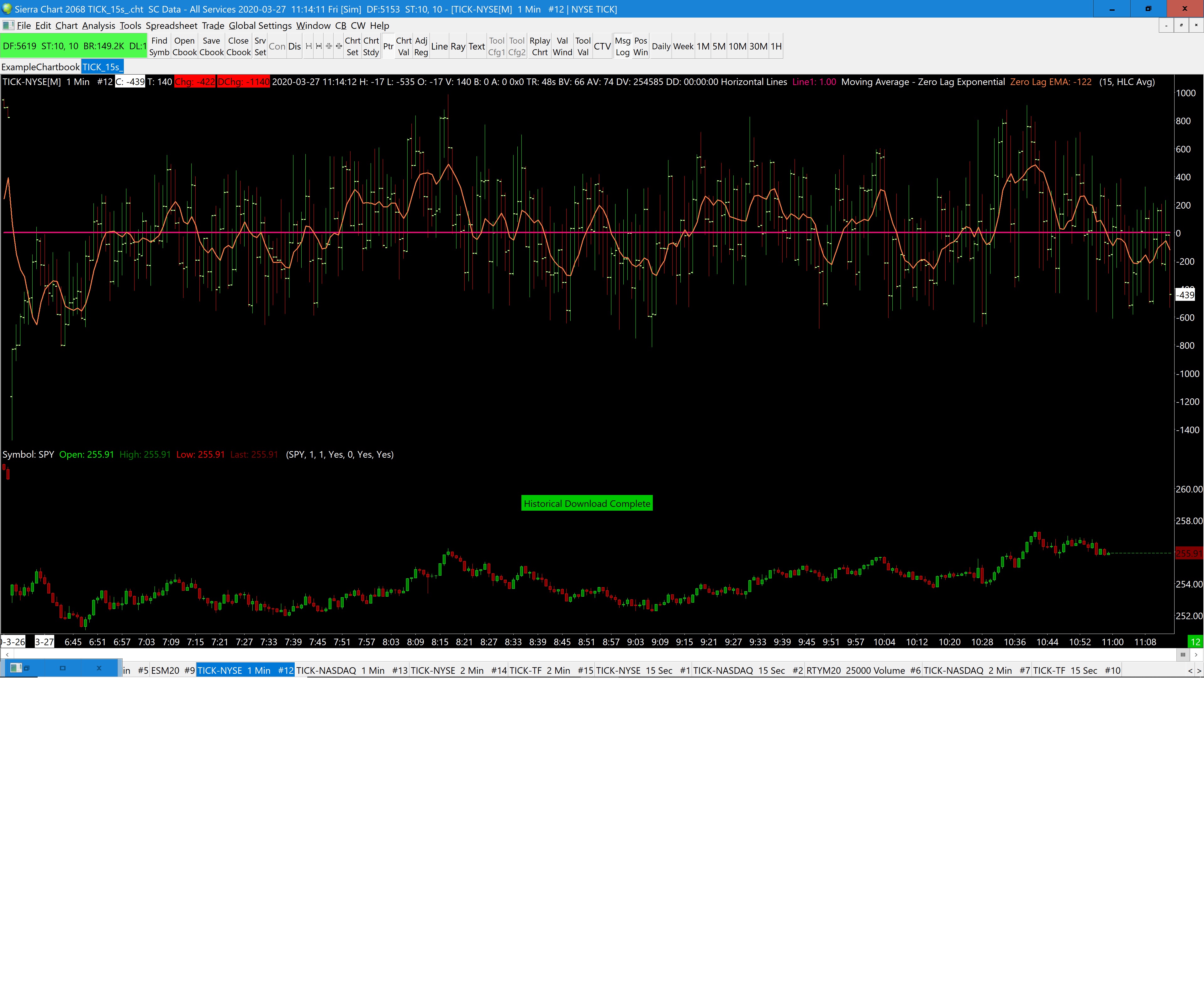Hi. I am new to sierra chart. But having a problem with setting up a chart. http://www.sierrachart.com/image.php?Image=1585333117922.png I cannot get my SPY - 1 minute - to update in real time like my NYSE $TICK - 1 minute - updates each minute. I always get these blank dashes for SPY where my NYSE $TICK is updating fine. I checked the GLobal Data Settings. Updated time and date to my time zone. Tried to delete all data and redownload. No change. Any help would be much appreciated. Thanks in advanced! -Rick Date Time Of Last Edit: 2020-03-27 18:22:53
