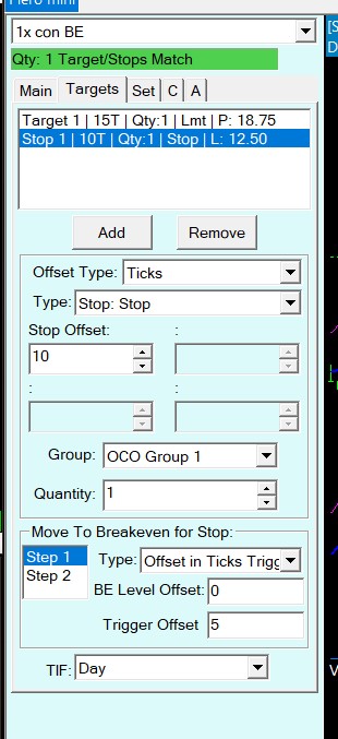 Hi, in my manual strategy I usually set the first BreakEven point to the half of the total Stop Loss, so if the stop loss is of -10 ticks, the first breakeven is -5, at the second step is +2. If I want do this automatically I can't set a -5 offset.. How I can do this? Thank's |