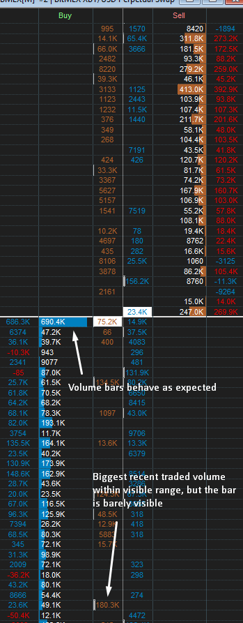 Is there a way to scale volume bar width for recent bid/ask volume in trading DOM based only on the visible range? Right now most of the time the volume bars are very narrow because somewhere way below or way above there was a heavily traded level. I want volume bars for recent bid/ask volume to scale in the same manner as volume bars in bid/ask size.