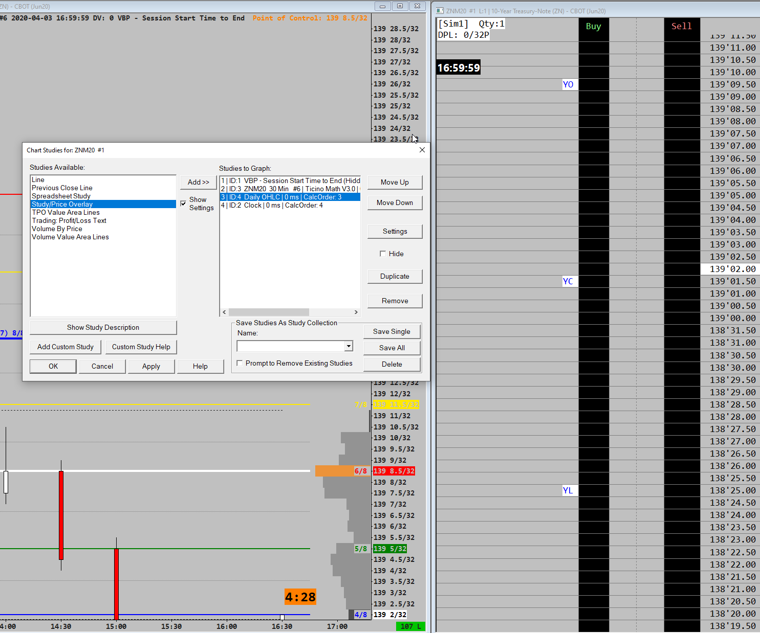 You can always directly ask the creator of the original chartbook (TicinoTrader ZN Playbook) to provide the instructions or make adjustments to the DOM, chartbook. Simply you can add the OHLC study to an existing chart, and overlay the study values on the DOM using the Study/Price overlay study available on the DOM. Alternatively you can set the OHLC study to display the levels labels in the 'Label column' then turn on the label column on the DOM. Hope this helps. Regards, tt |