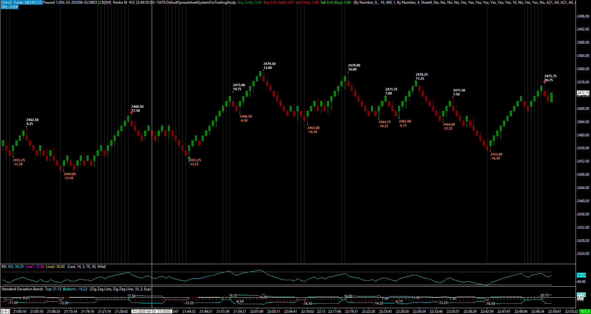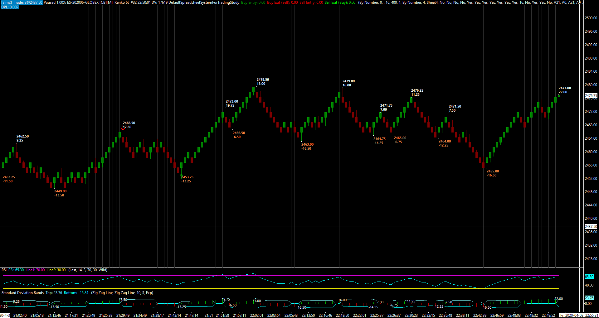 Good day, I am facing some calculation problems when using the standard deviation bands study and I would appreciate your input. I have set up a "colour background based on alert condition." The alert condition is when the top standard deviation band is less than 3. I put the chart in replay mode and I observe that when there are continuous bars that need to be colored, the program fails to do so "live" but when i hit recalculate it does.... You can check ES futures 3/4/2020 from 15:48 to 15:50 EST for example. Is there any setting I can change in order to have the standard deviation bands calculations correctly plotted? Thanks in advance! when in replay mode http://www.sierrachart.com/image.php?Image=1586114285552.png after recalculate: http://www.sierrachart.com/image.php?Image=1586113977308.png Date Time Of Last Edit: 2020-04-09 06:11:39