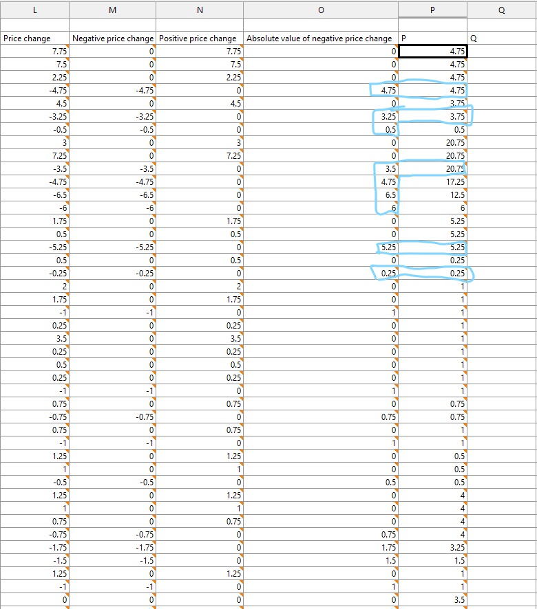 I'm trying to find the sum of each series of real numbers in column O (see attached file). If I were to do this in column P, P5 would show "4" (1.5 + 1.75 + 0.75). P9 would show "1", P12 would show 3.5, and so forth. How can I go about achieving this?
