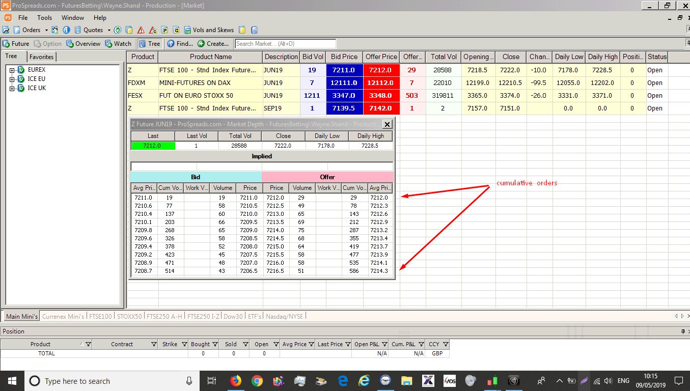 I have been using a platform which has been discontinued.. I trade the ftse 100 and micro emini and spread bet as UK based.. it had a very useful piece of functionality which was a market depth table giving live aggregated information of the bid and offers ..I have a screenshot which i have attached FTSE data is from the ICE exchange ticker Z |