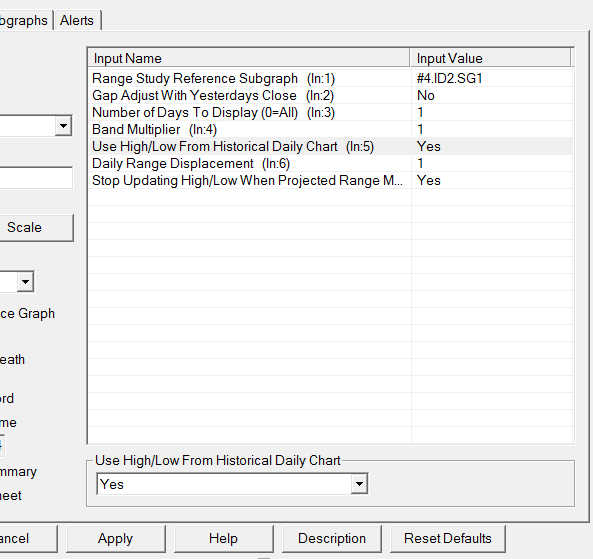 Quick question here: I have setup a Daily Range Bands Study which is based on 5day ADR calculated from Daily Chart. I want Upper Range Band and Lower Range Band to be fixed! In other words even if the price hits one of those.....the bands should stay there where they used to be. For some reason with the price reaching the band, the bands start adjusting and kind of stairing up/down - which I don't want to happen. What is wrong with my settings? For: Stop Updating High/Low When projected range met - I have YES. Is that what i need to do? Thank u consulting. I attached screen of my setup for yr ref. |