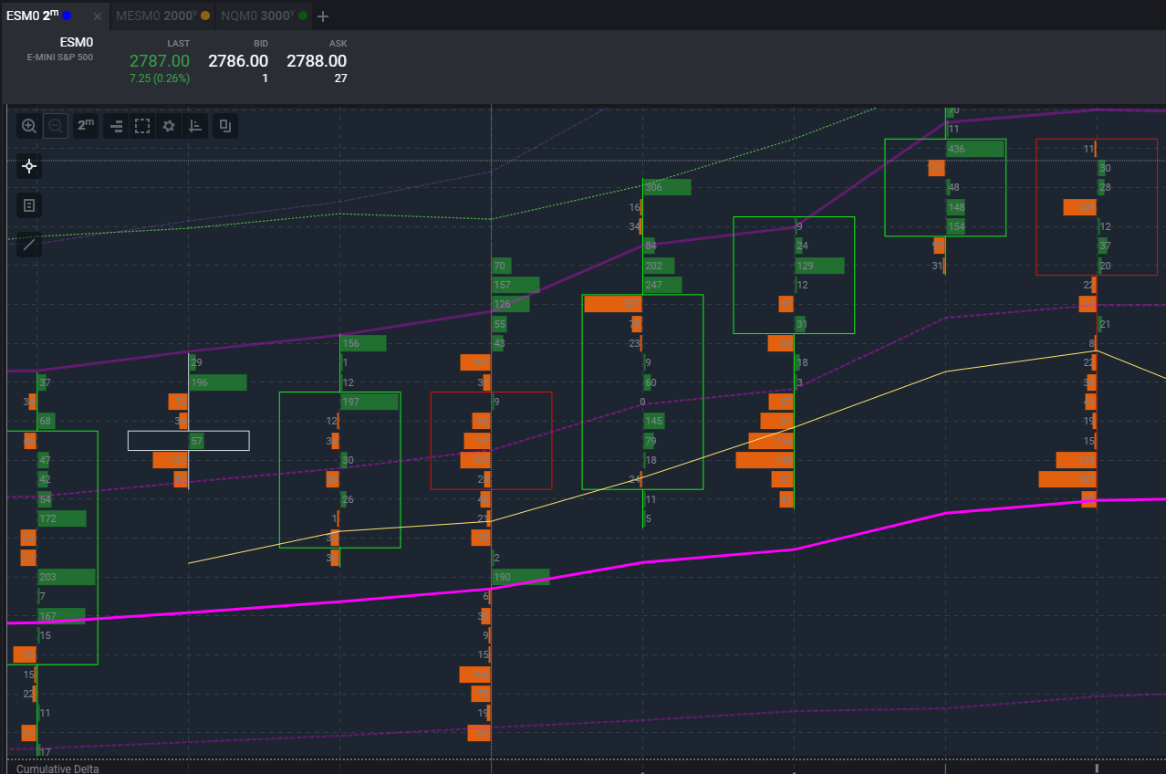 Hello, New user here and having trouble recreating the Ask/Bid volume delta by price candles like in my attached file. I have spent several hours playing with settings in the Numbers Bars and Volume by Price studies. I find the delta by price and histogram that aligns with the dominant side only (like in my screenshot) very useful. The split volume profile options are close but not quite what I am after. Please advise or tell me if this exact visualization is possible. Thanks so much. Date Time Of Last Edit: 2020-04-11 22:29:48