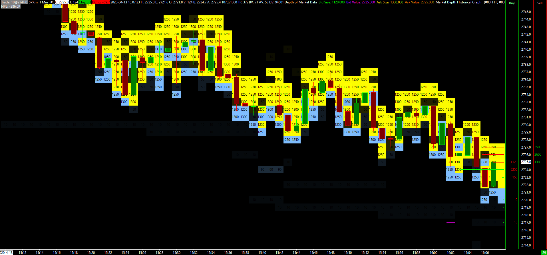 When you see things like this, it means that is an area where you were not connected to the data feed, so you are seeing the last known depth carried forward. But this does not seem to be the case with the chart you are showing. How is this Input set: Extend Last Known Depth to No. Refer to the information here: Market Depth Historical Graph: Extend Last Known Depth Sierra Chart Support - Engineering Level Your definitive source for support. Other responses are from users. Try to keep your questions brief and to the point. Be aware of support policy: https://www.sierrachart.com/index.php?l=PostingInformation.php#GeneralInformation For the most reliable, advanced, and zero cost futures order routing, *change* to the Teton service: Sierra Chart Teton Futures Order Routing Date Time Of Last Edit: 2020-04-18 01:04:06