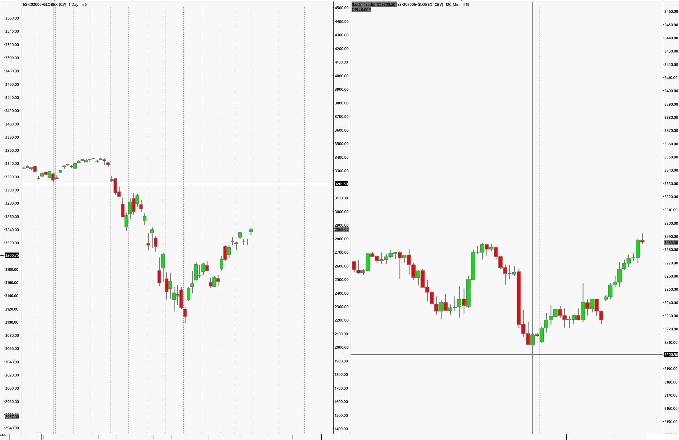 Hi Team SC, There are 2 bugs; 1. I am using the same contract month but when you look at the values per attachment, the low point of the Daily and H2 are not the same despite that the low was made in pit session. 2. Even when I hover to the H2 low, both show different values (3201.50 vs 3200.50). How do I sync them properly or this is something SC users have to live with? Data point is 15:30, Jan 31 2020. Thanks. Date Time Of Last Edit: 2020-04-19 01:43:12