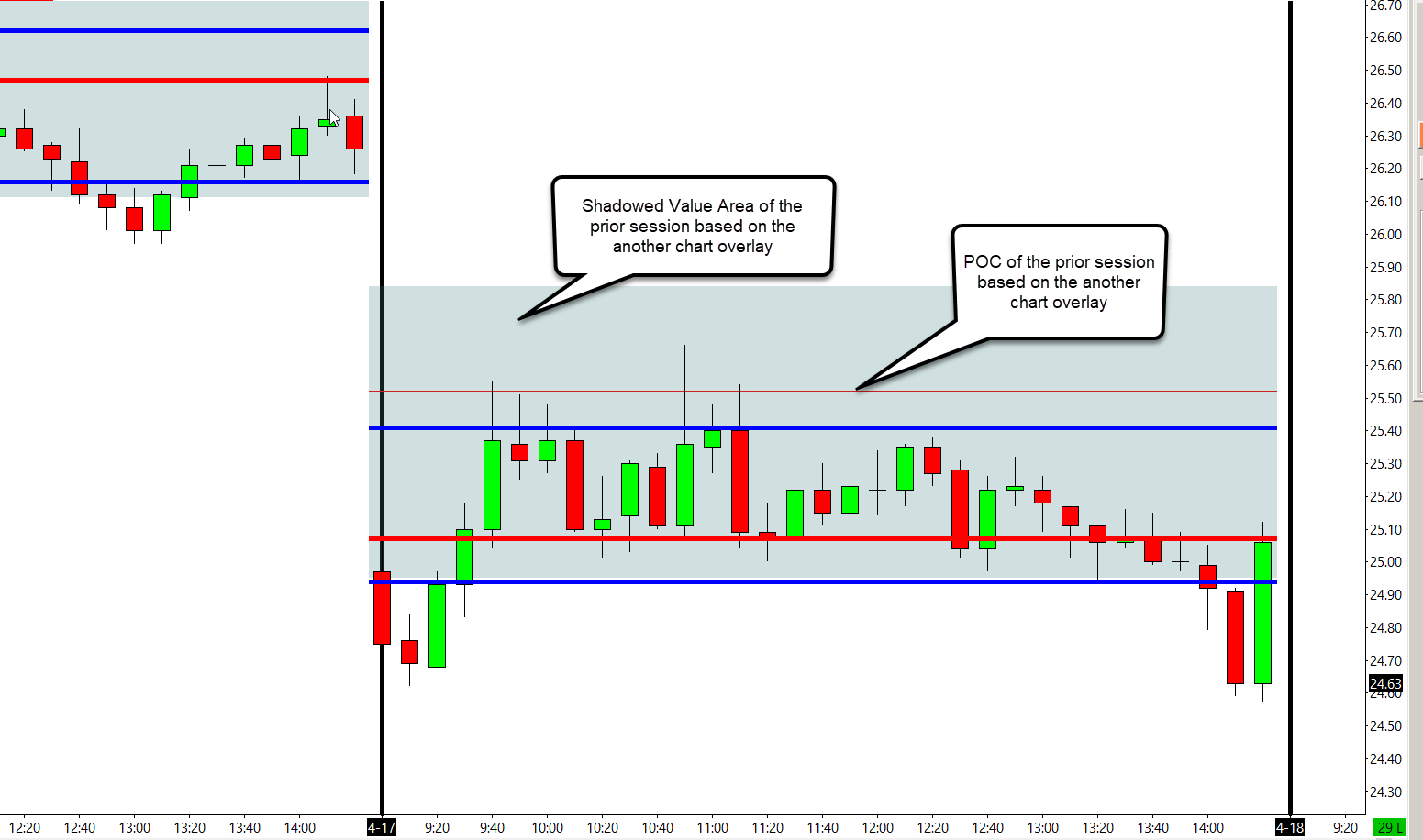 Dear Support, Would it be possible to request several new configuration features added to TPO charts? 1. At the moment it is only possible to highlight a single letter for the midpoint of the Market Profile. However, it would be nice to have the possibility to extend that midpoint line of the profile (Day session and Night session) same way as we can extend Value Area and POC lines, using same configuration options (i.e. Extend Until further Intersection). This functionality would be quite useful in order to determine the "Half Back" for the Day and Overnight sessions. 2. Can you please provide functionality in the settings to configure the TPO so that all prior days are plotted either as single combined rolling profile for specific (fixed) number of days (i.e 30 days or 60, or 90 days) which is automatically shifted forward with each new session, or all prior day sessions displayed as individual days but keeping the current session expended, plotting every 30 min TPO? The most important feature for this configuration is to have the setup automatically shifting next day - collapsing current session when it ends and starting to automatically plot a new one using individual 30 min bars. This way, the current session will always stay expended (showing every 30 min TPO) and all prior sessions will either be displayed as individual sessions or a combined "Rolling Profile". At the moment, the only way to accomplish this is by manually making these adjustment at the beginning of a new session. Very inconvenient. 3. Can you please add functionality to TPO configuration to shadow the background of the current session (expanded or collapsed) to show the Value Area and POC of the PRIOR session? I was able to accomplish this (please see attached slide) by configuring another chart with Value Area lines, shadowing it based on the "Fill Rectangular Top/Bottom" and then using Studdy/Chart overlay to plot it on the target chart, but this is REALLY a lot of work, not to mention running additional chart (or number of charts) in the background. This can actually be done as a new study instead of TPO configuration feature, in order to be applied to any chart, not just TPO. If I have somehow missed that requested new functionality already available, please point me in the direction of how to set this up. Thank you. Date Time Of Last Edit: 2020-04-20 00:07:35