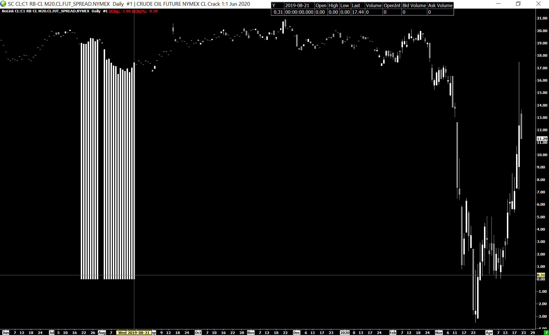 1.Turning off error filtering has fixed the missing data on Denali. I still have some missing on CQG from $0 and below, could be on their server end, another trader has the same. What's the risk to disabling error filtering? Is it necessary to avoid the lag and missing data? 2. I pulled up a CL-RB exchange spread daily chart, from 7/19 to 8/21 there are huge bars that appear incorrect. Is bad data the result of disabling error filtering? 3. Would error filtering have been causing the lag? 4. Would error filtering also have been causing the difference between DOM vs chart? 5. Thank you, let me know when we can schedule remote assist. Date Time Of Last Edit: 2020-04-20 21:53:12