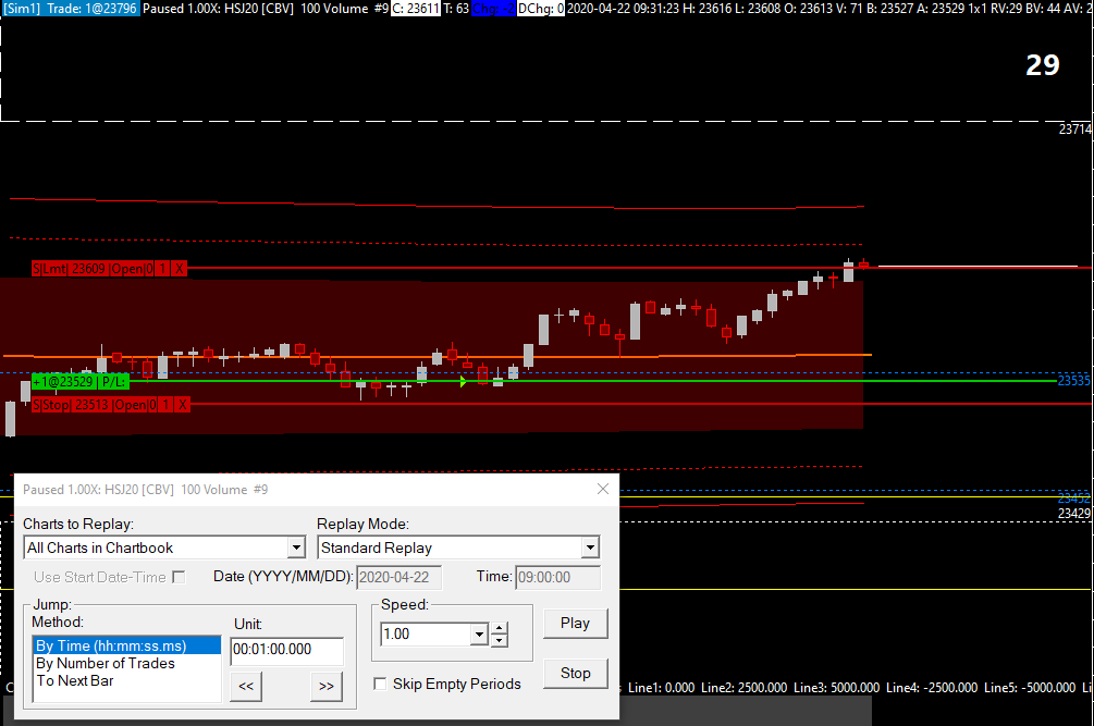 Hi, After I installed the 2088 version, I have been experiencing unsynchronized order fills during replay (on SC Data - All services). I have attached a screenshot of my chart, and you will see that the buy limit order (23529) had been filled before the bar even touched it. You will also see that even though the price has exceeded my target (Sell limit order at 23609), the order is still not filled. http://www.sierrachart.com/image.php?Image=1587529843156.png Could you please look into this and guide me to the solution? Thanks. Vitwat Date Time Of Last Edit: 2020-04-23 10:45:36