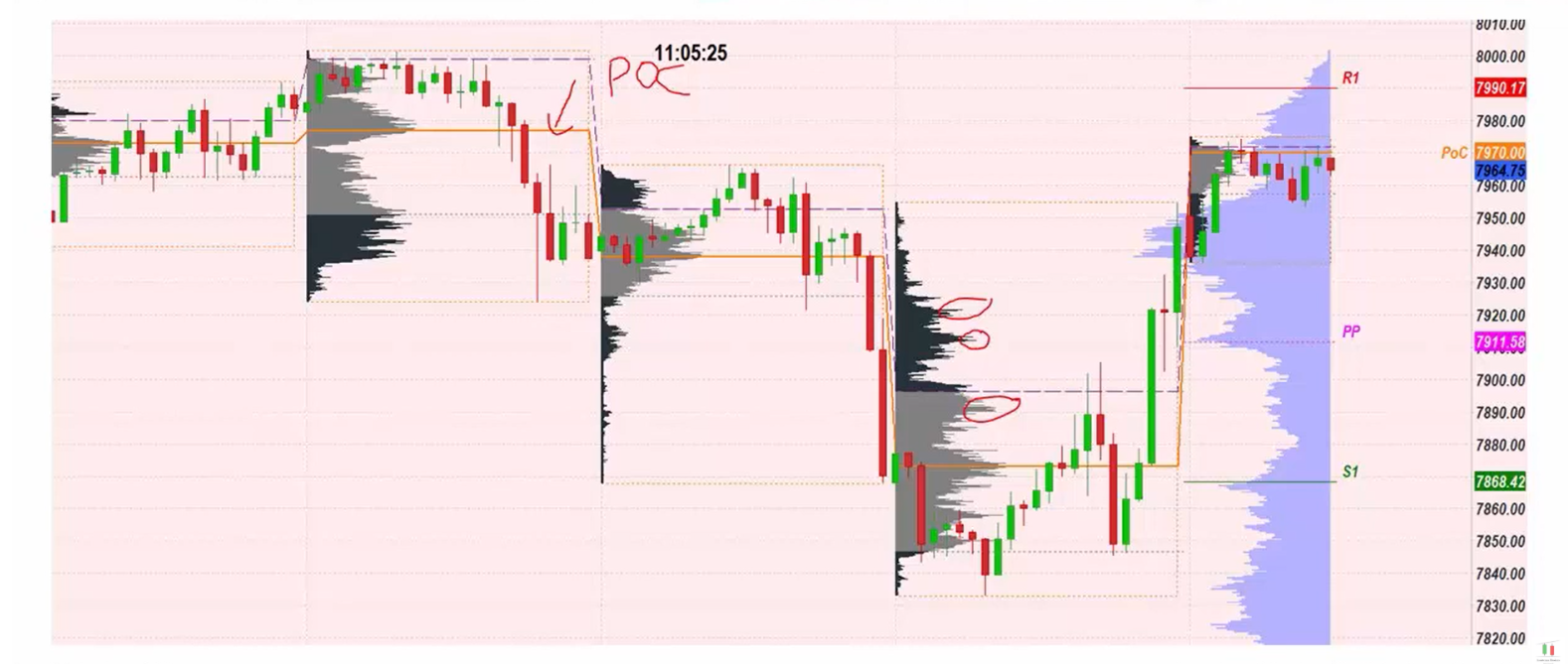 SC version 3 . VOL PROF I need to show in h1 time frame VOL PROF ( see image) for minimum n 5 days before , is it possible? If not, could be enought to show POC ,VAH,VAL LINE for n 5 days before. thank you Umbert p Annex screenshot is my own software Tfutures |
