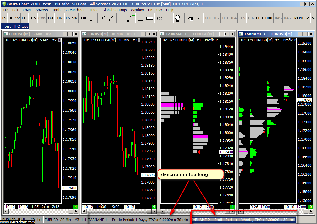 rel 2092 from rel 2086 Using a custom Title Bar Name with the "Display Chart Timeframe On Tabs When Title Bar Name Is Set To Be Used On Chart Tab (Global Settings >> General Settings >> General 2)" on a chart with a a TPO study result in a very long name tab. In a chartbook with multiple TPO charts and other standard bar charts makes browsing through the tabs impractical. Please can you resolve this problem and roll back to the usual visualization? TY Date Time Of Last Edit: 2020-04-24 10:19:31
