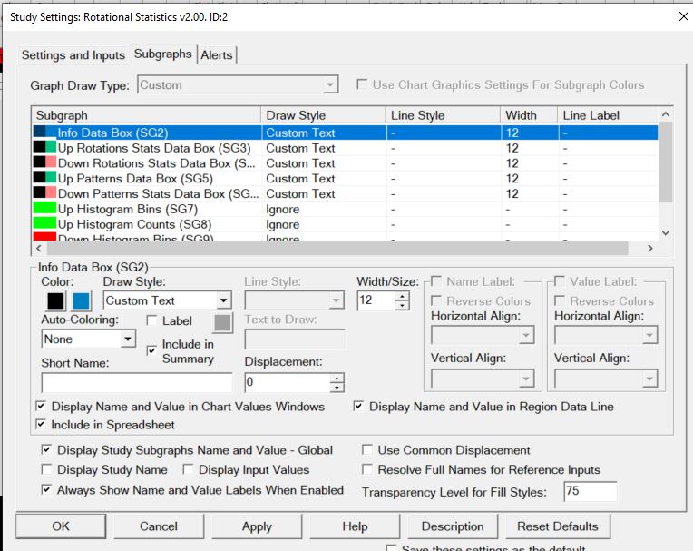 And here's the subgraph settings for that study...
