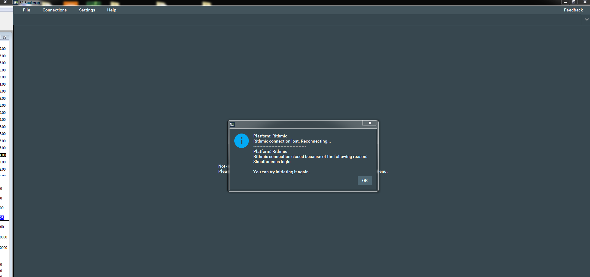 S5 Bookmap will not connect to Rithmic and Sierra charts