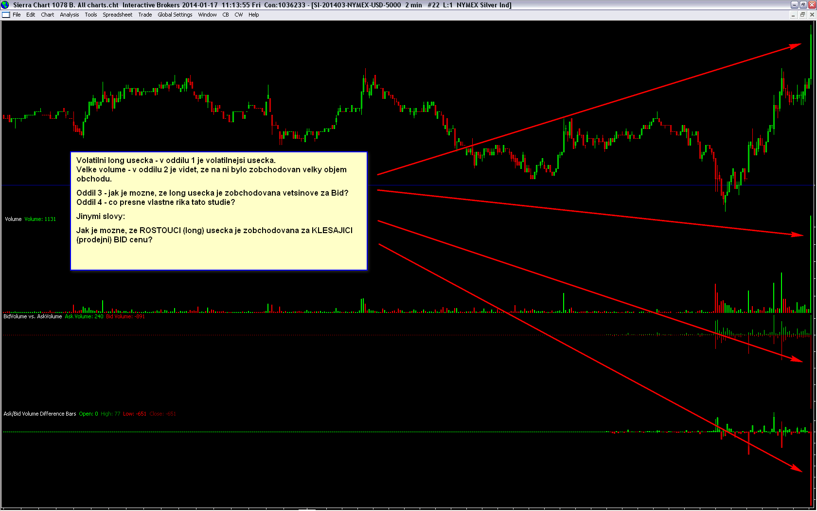hi, i would like to ask you about my question which is on the screen. i will translate my message here. volitility long bar - there is volatility long bar in section 1 huge volume - in section 2 we can see there is huge volume on this long bar section 3 - how is possible the LONG bar has been traded for Bid price section 4 - what exactly does this study mean? in other words: how can be possible the GROWING (long) bar has ben traded for DECREASING (selling) bid price? thanks to everyone |