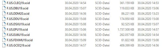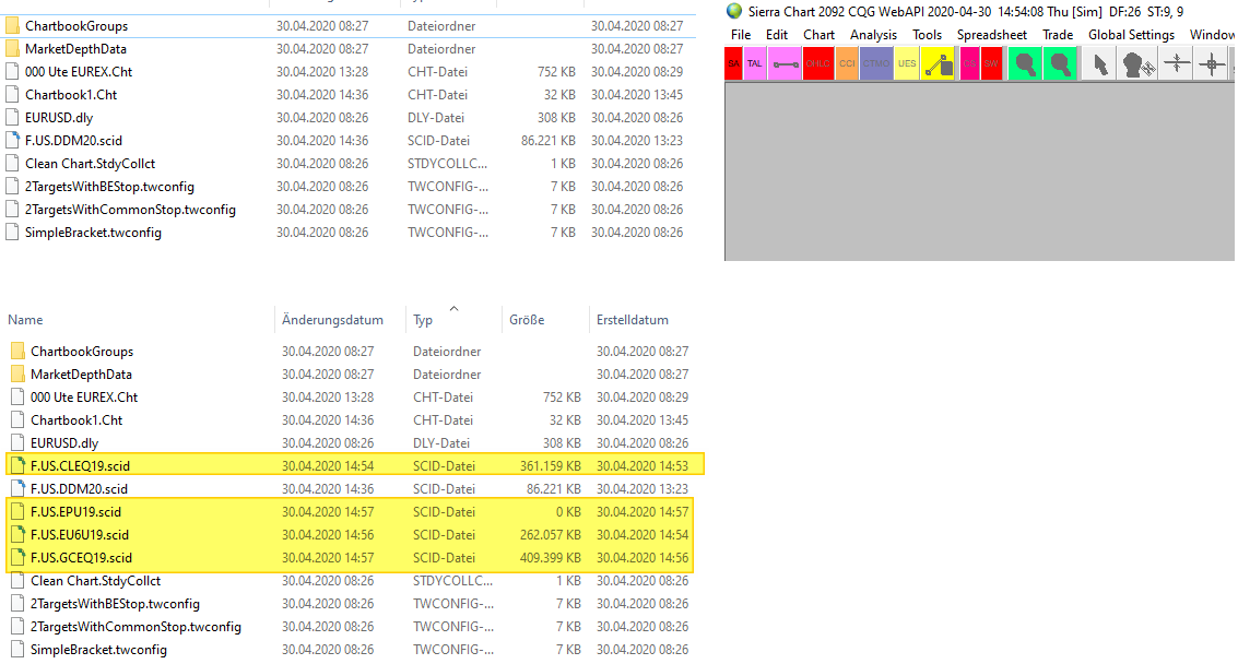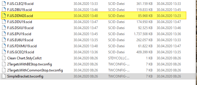 Pls see pic. Before I opened SC again, I deleted all xxx19.scid files. Then I started SC and didn't open any Chartbook. As you can see in the pic, the "xxx19.scid" files are still loaded in the background. |