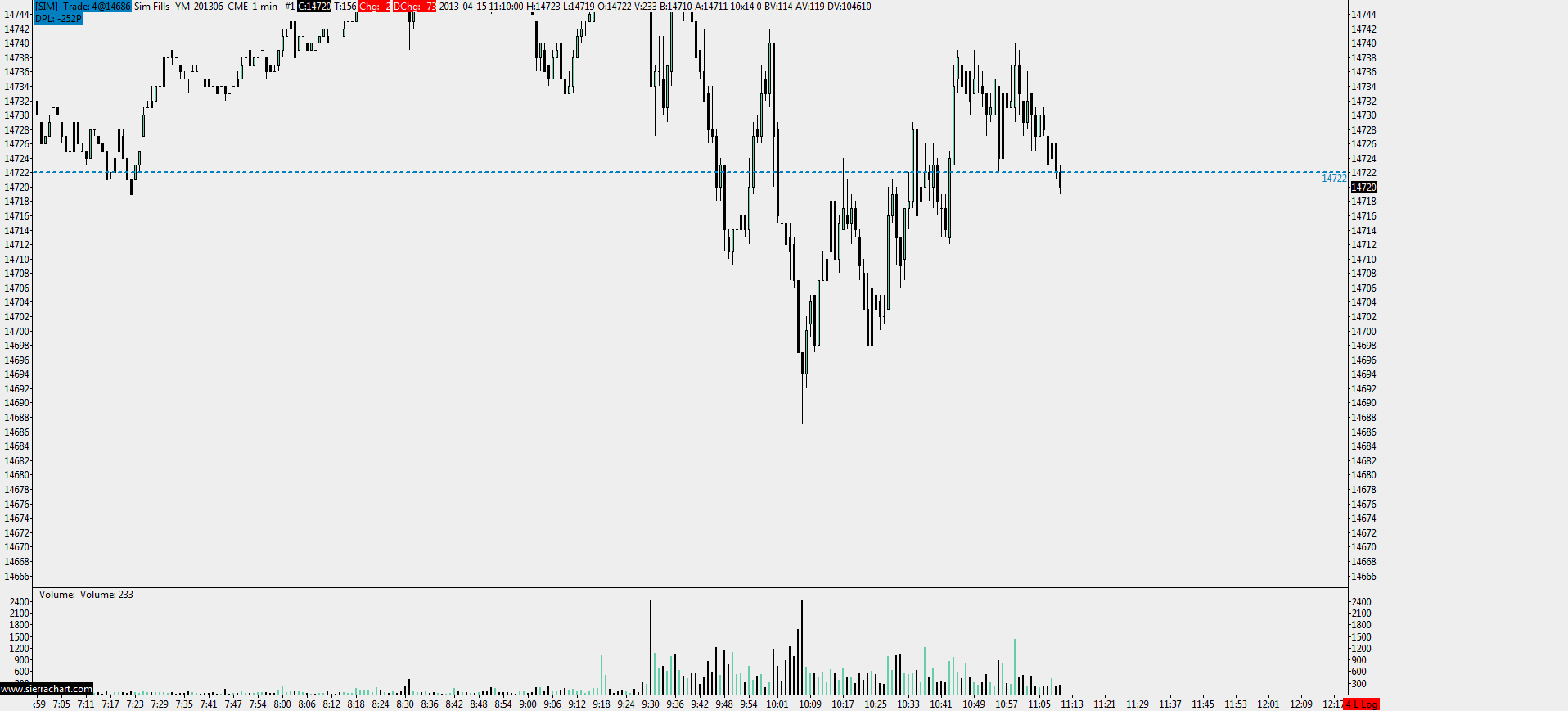 hello, I have 2 charts opened within chartbook: 1h and 1min. 1min chart stops being updated at least once a day. http://screencast.com/t/bYVNCx0HPvS9 http://screencast.com/t/nIAyCF90JxX0 here's the message log: Software version: 962 | 2013-04-15 09:39:11 Current Service Package: 3 | 2013-04-15 09:39:11 Sierra Chart Historical Data Service is included. | 2013-04-15 09:39:11 Active service: Trading Technologies | 2013-04-15 09:39:11 Data/Trade Service Settings automatically set. | 2013-04-15 09:39:11 Time Zone: -04:00:00 (EST-05EDT+01,M3.2.0/02:00,M11.1.0/02:00) | 2013-04-15 09:39:11 2013-04-15 09:39:11 Local computer clock time | 2013-04-15 09:39:11 2013-04-15 13:39:11 GMT time | 2013-04-15 09:39:11 2013-04-15 09:39:11 Time zone adjusted time | 2013-04-15 09:39:11 Time difference to server time: 0 seconds. | 2013-04-15 09:39:11 Program path: C:\Temp\SierraChart\ | 2013-04-15 09:39:11 Data Files path: C:\temp\SierraChart\Data\ | 2013-04-15 09:39:11 OS Version Number: 6.1 | 2013-04-15 09:39:11 Connecting to Trading Technologies... | 2013-04-15 09:39:17 Starting the Price Feed session. Connecting to 63.85.80.113 port 10502... | 2013-04-15 09:39:17 TT Price Feed FIX Session: Sending the Logon message. | 2013-04-15 09:39:17 TT FIX Price Feed session connected. | 2013-04-15 09:39:17 Starting the Orders session. Connecting to 63.85.80.113 port 10501... | 2013-04-15 09:39:17 TT Orders FIX Session: Sending the Logon message. | 2013-04-15 09:39:17 TT FIX Orders session connected. | 2013-04-15 09:39:17 Connected to Trading Technologies | 2013-04-15 09:39:17 TT Gateway Status: Price server for the CME-A exchange is Open | 2013-04-15 09:39:17 TT Gateway Status: Order server for the CME-A exchange is Open | 2013-04-15 09:39:17 TT Gateway Status: Fill server for the CME-A exchange is Open | 2013-04-15 09:39:17 TT Gateway Status: Price server for the Eurex-A exchange is Open | 2013-04-15 09:39:17 TT Gateway Status: Order server for the Eurex-A exchange is Open | 2013-04-15 09:39:17 TT Gateway Status: Fill server for the Eurex-A exchange is Open | 2013-04-15 09:39:17 TT Gateway Status: Price server for the ICE_IPE-A exchange is Open | 2013-04-15 09:39:17 TT Gateway Status: Order server for the ICE_IPE-A exchange is Open | 2013-04-15 09:39:17 TT Gateway Status: Fill server for the ICE_IPE-A exchange is Open | 2013-04-15 09:39:17 Starting updates for: YM-201306-CME | 2013-04-15 09:39:28 Requesting market data for YM-201306-CME (market depth: 5) | 2013-04-15 09:39:28 HD Request # 1 - Downloading Intraday chart data for YM-201306-CME to the file YM-201306-CME.scid. Service: scsrv | 2013-04-15 09:39:28 HD Request # 1 - Starting date and time: 2013-04-12 14:10:02 | 2013-04-15 09:39:28 HD Request # 1 - Using server: ds4.sierracharts.com port 10049 | 2013-04-15 09:39:28 HD Request # 1 - Requesting up to 93 days of Intraday data. | 2013-04-15 09:39:28 HD Request # 1 - Decompressing data. | 2013-04-15 09:39:28 HD Request # 1 - Receiving Intraday data for YM-201306-CME starting at 2013-04-12 14:10:06 | 2013-04-15 09:39:28 HD Request # 1 - Timestamp of first Intraday data file record written: 2013-04-12 14:10:06 | 2013-04-15 09:39:28 HD Request # 1 - Received 9757 records from 2013-04-12 14:10:06 to 2013-04-15 09:39:26 (2.8 days) and wrote 9757 records for YM-201306-CME | 2013-04-15 09:39:29 HD Request # 1 - Intraday download COMPLETE for YM-201306-CME | 2013-04-15 09:39:29 Real-time intraday chart data file updates started for YM-201306-CME | 2013-04-15 09:39:29 Limiting the number of days back for the continuous futures chart to 3 years based on the account type. | 2013-04-15 09:39:38 Symbols used for ZNM13 continuous contract chart: | 2013-04-15 09:39:38 ZNM10 | 2013-04-15 09:39:38 ZNU10 | 2013-04-15 09:39:38 ZNZ10 | 2013-04-15 09:39:38 ZNH11 | 2013-04-15 09:39:38 ZNM11 | 2013-04-15 09:39:38 ZNU11 | 2013-04-15 09:39:38 ZNZ11 | 2013-04-15 09:39:38 ZNH12 | 2013-04-15 09:39:38 ZNM12 | 2013-04-15 09:39:38 ZNU12 | 2013-04-15 09:39:38 ZNZ12 | 2013-04-15 09:39:38 ZNH13 | 2013-04-15 09:39:38 ZNM13 | 2013-04-15 09:39:38 Symbols used for FGBL-201306-Eurex continuous contract chart: | 2013-04-15 09:39:38 FGBL-201303-Eurex | 2013-04-15 09:39:38 FGBL-201306-Eurex | 2013-04-15 09:39:38 Symbols used for ES-201306-CME continuous contract chart: | 2013-04-15 09:39:38 ES-201303-CME | 2013-04-15 09:39:38 ES-201306-CME | 2013-04-15 09:39:38 HD Request # 3 - Downloading Intraday chart data for FGBL-201303-Eurex to the file FGBL-201303-Eurex.scid. Service: scsrv | 2013-04-15 09:39:39 HD Request # 3 - Starting date and time: 2013-03-07 06:29:56 | 2013-04-15 09:39:39 HD Request # 3 - Using server: ds5.sierracharts.com port 10049 | 2013-04-15 09:39:39 HD Request # 3 - Requesting up to 93 days of Intraday data. | 2013-04-15 09:39:39 HD Request # 3 - Decompressing data. | 2013-04-15 09:39:39 HD Request # 3 - Received 0 records and wrote 0 records for FGBL-201303-Eurex | 2013-04-15 09:39:40 HD Request # 3 - Intraday download COMPLETE for FGBL-201303-Eurex | 2013-04-15 09:39:40 Real-time intraday chart data file updates started for FGBL-201303-Eurex | 2013-04-15 09:39:40 HD Request # 5 - Downloading Intraday chart data for ES-201303-CME to the file ES-201303-CME.scid. Service: scsrv | 2013-04-15 09:39:40 HD Request # 5 - Starting date and time: 2013-03-15 09:29:59 | 2013-04-15 09:39:40 HD Request # 5 - Using server: ds3.sierracharts.com port 10049 | 2013-04-15 09:39:40 HD Request # 5 - Requesting up to 93 days of Intraday data. | 2013-04-15 09:39:40 HD Request # 5 - Decompressing data. | 2013-04-15 09:39:40 HD Request # 5 - Receiving Intraday data for ES-201303-CME starting at 2013-03-15 09:29:59 | 2013-04-15 09:39:41 HD Request # 5 - Timestamp of first Intraday data file record written: 2013-03-15 09:29:59 | 2013-04-15 09:39:41 HD Request # 5 - Received 1 record from 2013-03-15 09:29:59 to 2013-03-15 09:29:59 (0.0 seconds) and wrote 1 record for ES-201303-CME | 2013-04-15 09:39:41 HD Request # 5 - Intraday download COMPLETE for ES-201303-CME