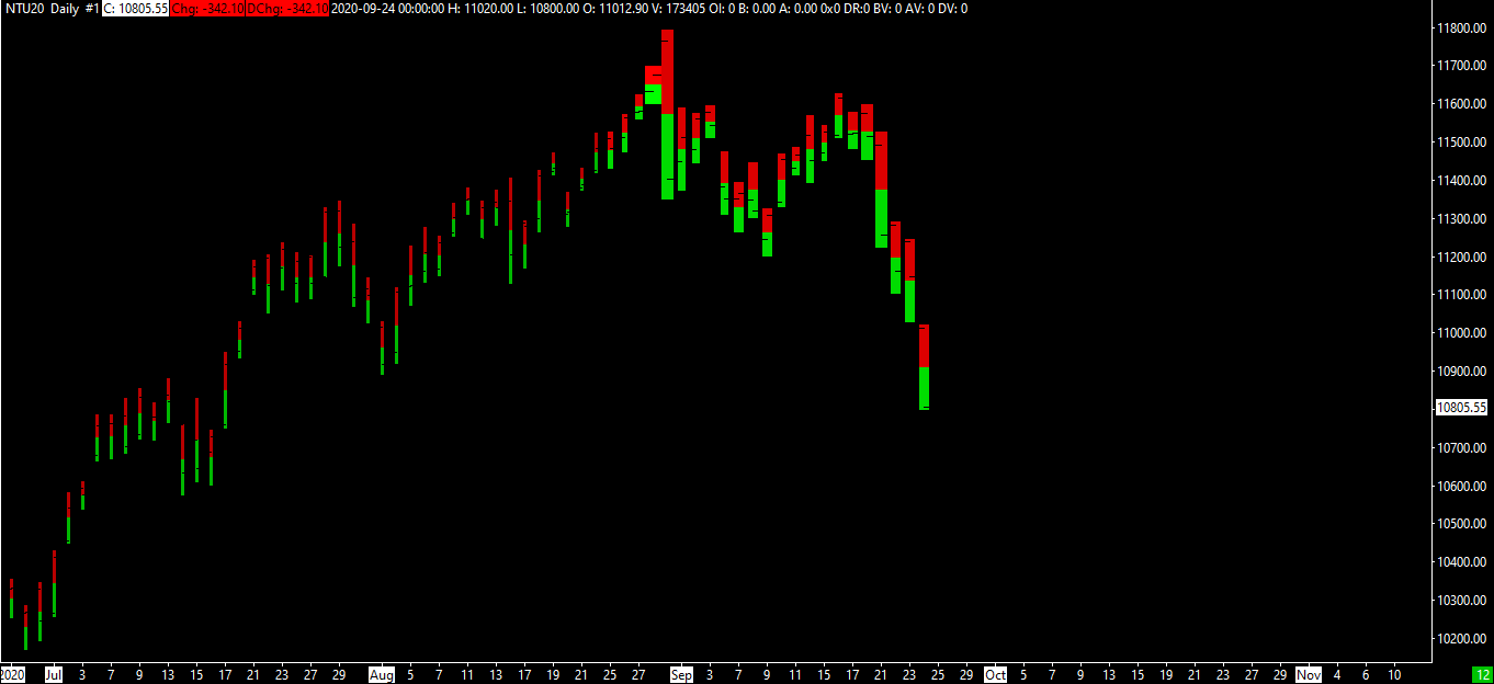 HI, Am using a SIM Account with SC Data Feed to view Numbers Bars for NIFTY Futures (NTU20).Have got Daily Historical data ,but upon switching to 30 min Numbers Bars, I get a blank screen. Tried switching to Global Data Feed, but it didn't solve the issue. Is this because it's a SIM account or can there be another solution (because I do get delayed data from EUREX while trading DAX(DYZ20)-30min)? THis is the Daily Chart http://www.sierrachart.com/image.php?Image=1602096618693.png THe 30 min chart is just Blank Date Time Of Last Edit: 2020-10-07 18:52:42