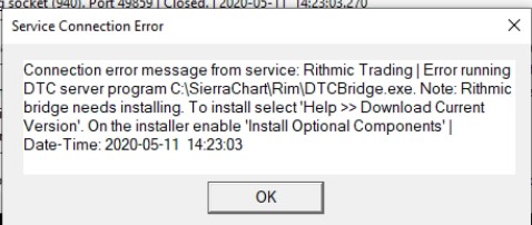 We apologize for the delay. We have been no longer providing the Rithmic bridge program in the installer because of: Regarding Rithmic (Our Final Post on this Subject) But we have added it back for now. Install Sierra Chart again with Help >> Download Current Version and on the installer window enable Install Optional Components. You then should get the Rithmic bridge program and can connect. If you have further connection issues contact your broker. Sierra Chart Support - Engineering Level Your definitive source for support. Other responses are from users. Try to keep your questions brief and to the point. Be aware of support policy: https://www.sierrachart.com/index.php?l=PostingInformation.php#GeneralInformation For the most reliable, advanced, and zero cost futures order routing, *change* to the Teton service: Sierra Chart Teton Futures Order Routing |