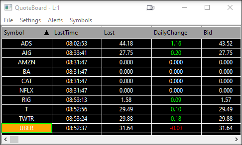 quoteboard showing no data for certain symbols