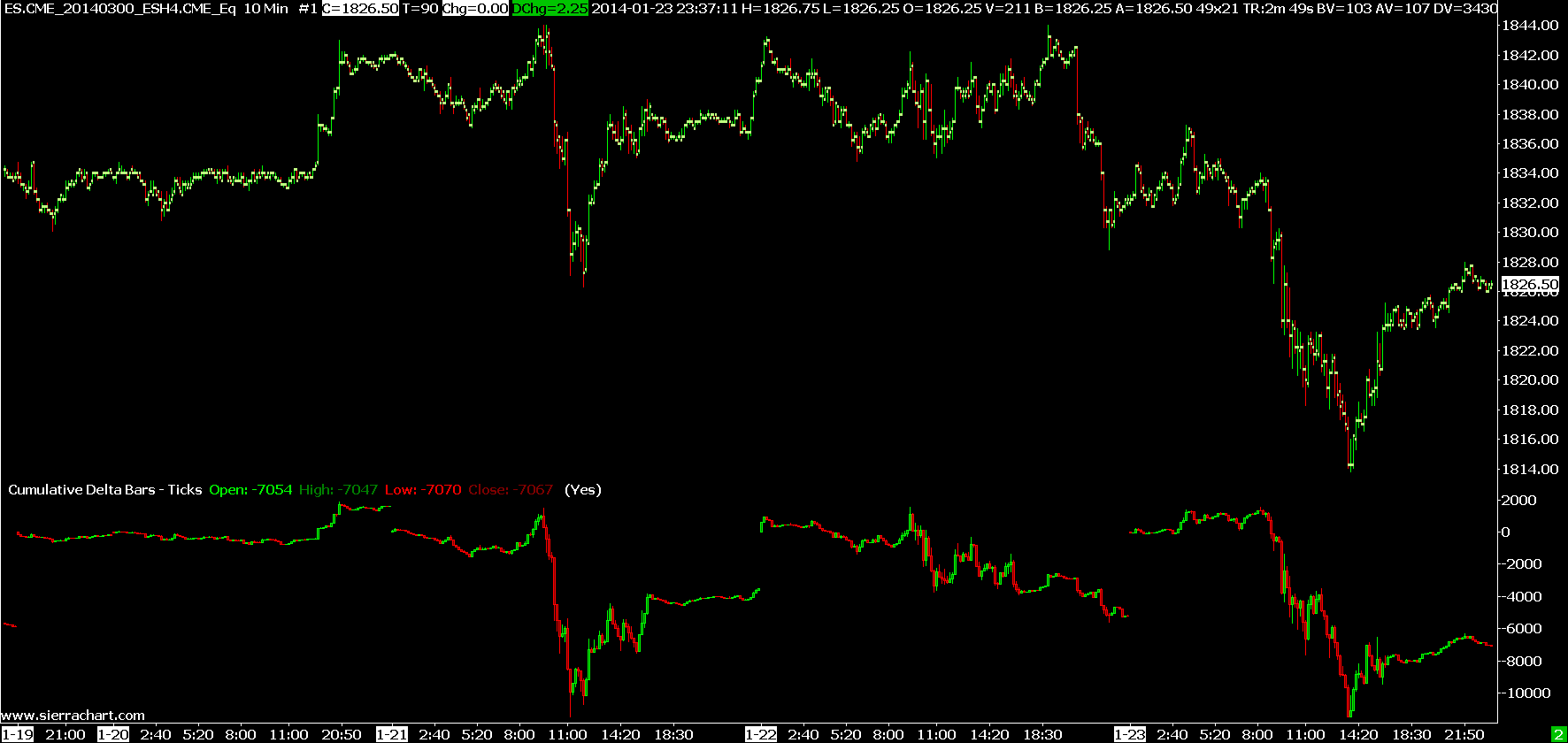 Hello, I'm having issues with Cumulative Delta-ticks showing incomplete data. Here's a screen capture http://screencast.com/t/IW2xrLrpU How can I fix this? I am using CT4 for my data. I am also a Top Step trader. -Brien |