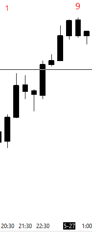 Hi, I have a study that after a certain condition is meet with the current bar, draws a number "1" over the high 8 bars back. The software places the number "1" 8 bars back but the height is based on the current bar's high and not the high of the bar displaced 8 bars in the past. Is it possible to match the "1" to that bar's height after the condition is meet in the current bar. image attached should have the "1" closure to the bar's high from 20:30:00, not the same height as the "9" at 00:30:00. the study draws "1" 8 bars back once the current bar is a 9. Thanks in advance |