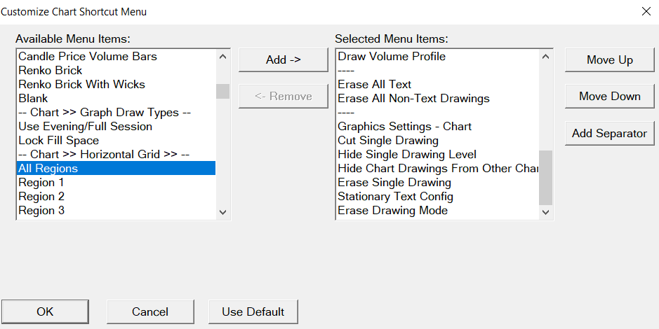 You can control this per individual Chart Drawing. Allow Copy to Other Charts can be added to the Chart Drawing shortcut menu: Chart Drawing Tools: Customizing Chart Drawing Shortcut Menu Sierra Chart Support - Engineering Level Your definitive source for support. Other responses are from users. Try to keep your questions brief and to the point. Be aware of support policy: https://www.sierrachart.com/index.php?l=PostingInformation.php#GeneralInformation For the most reliable, advanced, and zero cost futures order routing, *change* to the Teton service: Sierra Chart Teton Futures Order Routing |