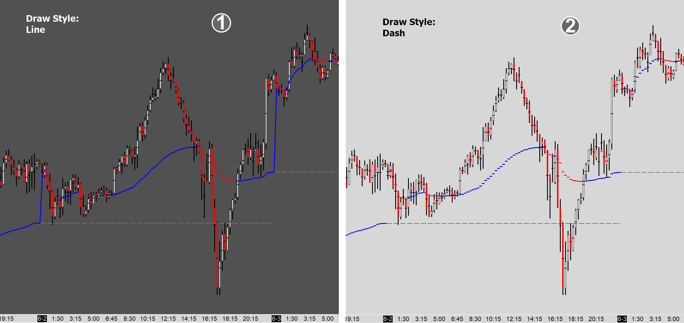 The picture shows the VWAP with two different Draw Styles (Line and Dash). As soon as there is a change of the day, the Draw Styles behave differently. Is it possible to integrate an additional Draw Style that has the look of the "Line" but the behavior of the "Dash"? |