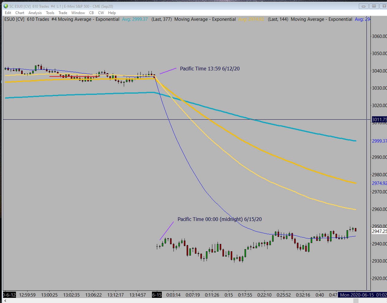 I have run continuous volume based ES charts for yrs, this am saw that no plotted data for open at 3 pm PST yesterday (Sunday) until midnight. ok since then and before. deleted, reloaded data - no change. Hoping this will correct at some point, wondering if anything I can do to make happen sooner. thanks. Dave Austin |