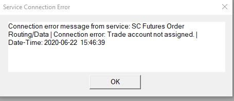 I am unable to connect to SC Futures Order Routing/Data as DataFeed. I get error " Trade account not assigned". can you please help? Thank you!