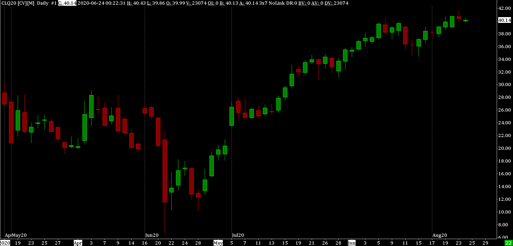 Here are images of Continuous Futures Contract charts for CL futures with the current contract as August 2020. With back adjustments: http://www.sierrachart.com/image.php?Image=1592967216658.png Without back adjustments: http://www.sierrachart.com/image.php?Image=1592973170673.png How are your charts different? We need precise information to understand what is the issue. And it is irrelevant making comparisons to other sources. The question is simply about the specific data in the chart and why there is a problem. We will only accept a reference, to specific Daily values on the CME website for specific contracts. Sierra Chart Support - Engineering Level Your definitive source for support. Other responses are from users. Try to keep your questions brief and to the point. Be aware of support policy: https://www.sierrachart.com/index.php?l=PostingInformation.php#GeneralInformation For the most reliable, advanced, and zero cost futures order routing, *change* to the Teton service: Sierra Chart Teton Futures Order Routing Date Time Of Last Edit: 2020-06-24 04:35:42