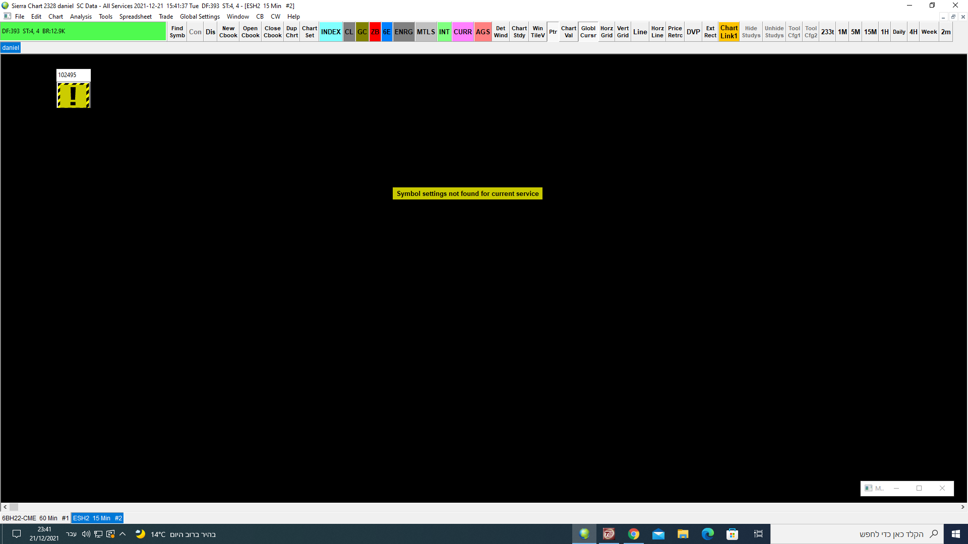 You have two Sierra Chart accounts. We want you to login to Sierra Chart with the account danielbenamiaharon: Sierra Chart - Software Login Instructions: Login with a Different Sierra Chart Account Name And we will move the 36 USD credit you added to the account you posted with, to the account listed above. And we will activate Service Package 3 on that account. And we recommend that you start with the Delayed Exchange data feed: Delayed Exchange Data Feed Sierra Chart Support - Engineering Level Your definitive source for support. Other responses are from users. Try to keep your questions brief and to the point. Be aware of support policy: https://www.sierrachart.com/index.php?l=PostingInformation.php#GeneralInformation For the most reliable, advanced, and zero cost futures order routing, use the Teton service: Sierra Chart Teton Futures Order Routing Date Time Of Last Edit: 2020-06-24 19:54:26