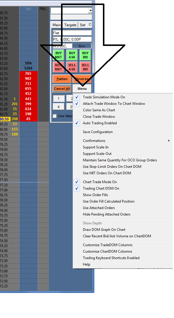 I have enclosed a picture of my TradeDOM and there is no menu other than "Clear Trade simulation and Data" under the "Trade" menu. This does not clear the "Recent Bid Volume" or "Recent Ask Volume". If you could please be so kind, to point me in the right direction, I would appreciate it. |