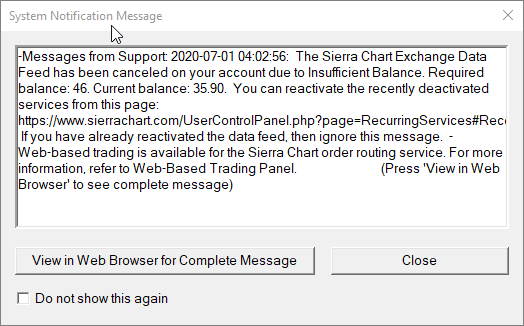 Dear SC Team, this morning had a few problems with trading. I charged the account yesterday for going further with my exchanges today. But this morning cames up the message ( see attached ) I charged the account this morning again and tried to reactivate. And now the message cames up again. The Eurex Data appears for some minutes and disappears again now. Whats wrong there ?? Please help. Thank you |