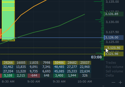 Hello, 1) Is there a way to put level 2 / market depth on the right side of the chart window, and / or market depth historical data? I'd like to see number of bids/asks on the side of the chart. See group-l2.png attached 2) Is there a way to display time information, such as number of buy trades, sell trades, and delta? See time-information.png attached 2) Is there a way to group charts in tabs, so I can have different time frames that I can access via tabs, or do I need to just manually change time frames? See group-l2.png attached Below is an example from another platform showing market depth on the right side of the chart: |
