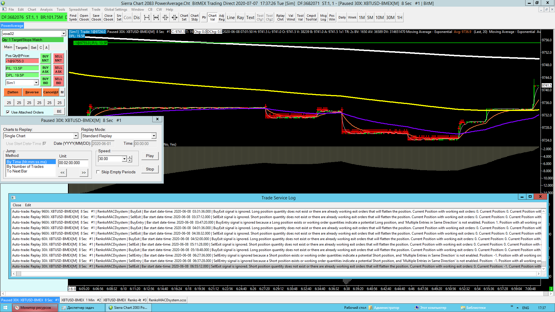 I have seen this before with BitMEX. There is no open position, so the exit fails. Since Sierra thinks there is one, look for an entry in the trade activity log that is throwing off the position size. (I have seen 'Funding' in the Action Source.) You can then edit and delete the record from the downloaded data. BradH |