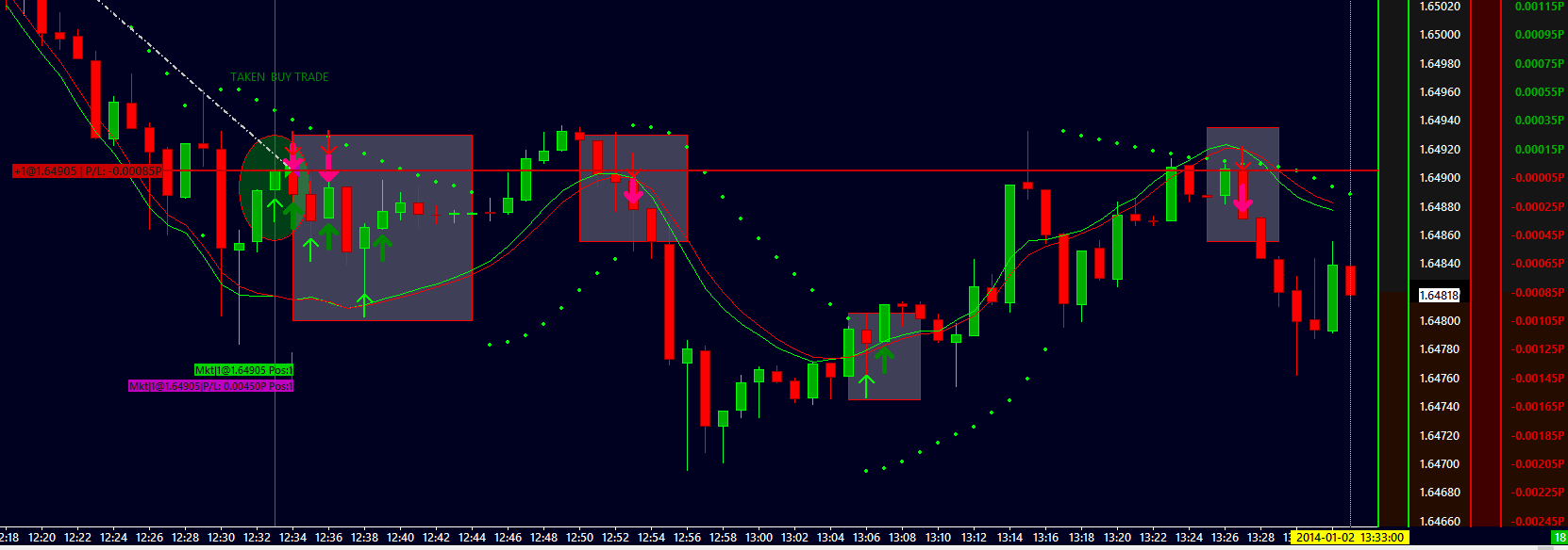 There is still many missed trades: See in the picture, the first green arrow up signals a buy, the trade has been taken(green circle zone), but the following sells orders are left. All the following orders are left(grey squares). The study settings are good(reversals and others). I don't understand what's happening. Maybe a bug of sierra. |
