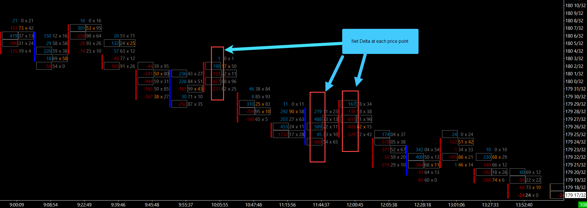 Hello, I'm trying to test a trading system and I need to access (via Subgraphs) the delta at each individual price level within the bar. Using the Numbers Bar study I have delta (Ask Vol Bid Vol Difference) in column 1. However, I don't see any subgraphs for each individual price level. Please refer to attached pics. Thanks, Tom |