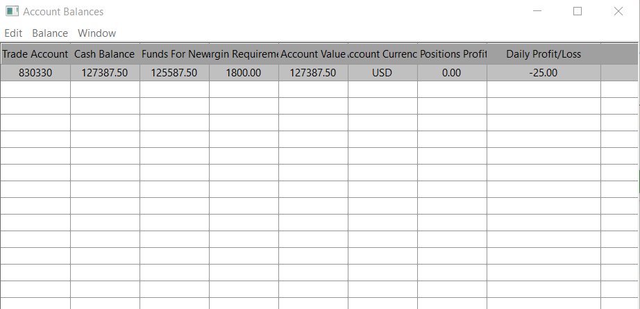 Please your help, I cannot place orders in trading evaluator, Market MES, order of 3 contracts Trading Evaluator order update (Order reject). Info: Trade Order Error - Account currency not set. Text: Parent order. Tag: MES 3 C.twconfig. Internal Order ID: 495. Service Order ID: 412738. Symbol: MESU20. Account: 830330 | 2020-07-13 03:04:20.179 * Everything was working fine, some times sierra annoy me with this errors. i attached the images of the account Thanks |