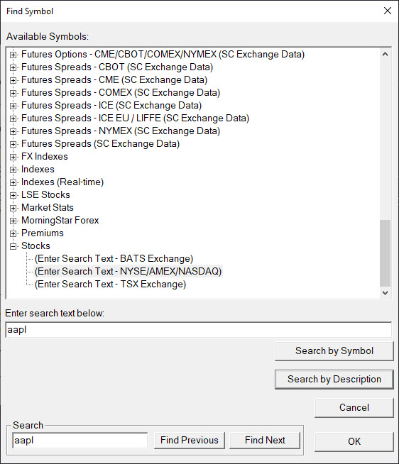 How do I load a stock chart? For example, I am using the search facility to try and find apple stocks but nothing happens. Do I need to pay a subscription fee or something? I am using the 'SC Data All Services' service in Sierra. |