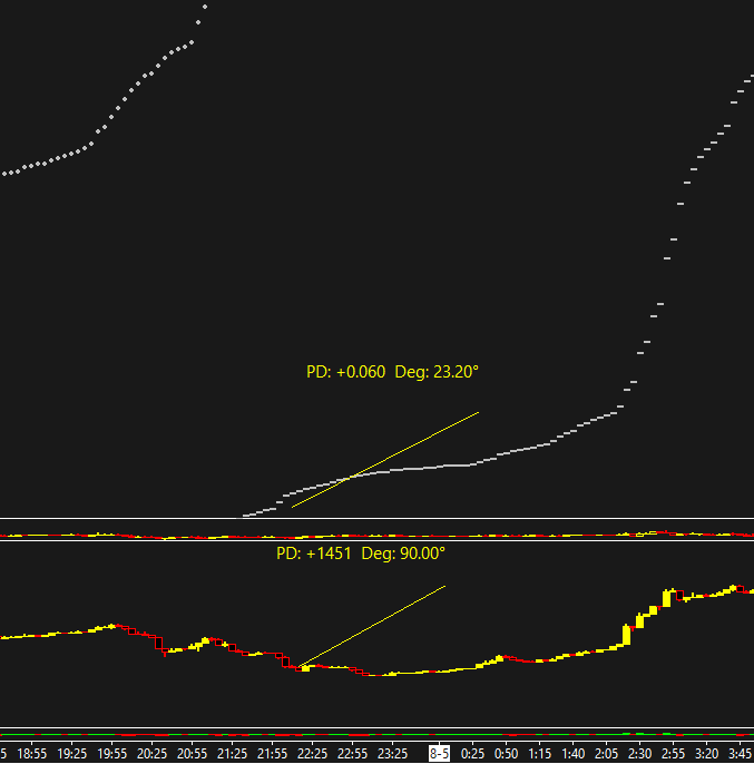 To understand how the angle calculation is done, refer to: Chart Drawing Tools: Drawing a Line with a Specific Angle or Slope We also do not know what is meant by "doesn't work". Sierra Chart Support - Engineering Level Your definitive source for support. Other responses are from users. Try to keep your questions brief and to the point. Be aware of support policy: https://www.sierrachart.com/index.php?l=PostingInformation.php#GeneralInformation For the most reliable, advanced, and zero cost futures order routing, *change* to the Teton service: Sierra Chart Teton Futures Order Routing Date Time Of Last Edit: 2020-08-05 18:45:56