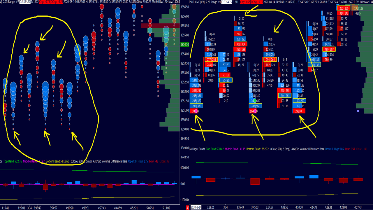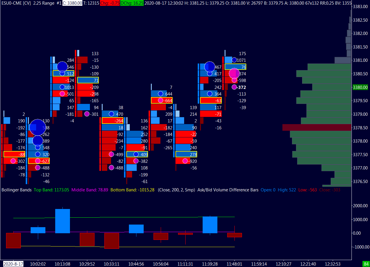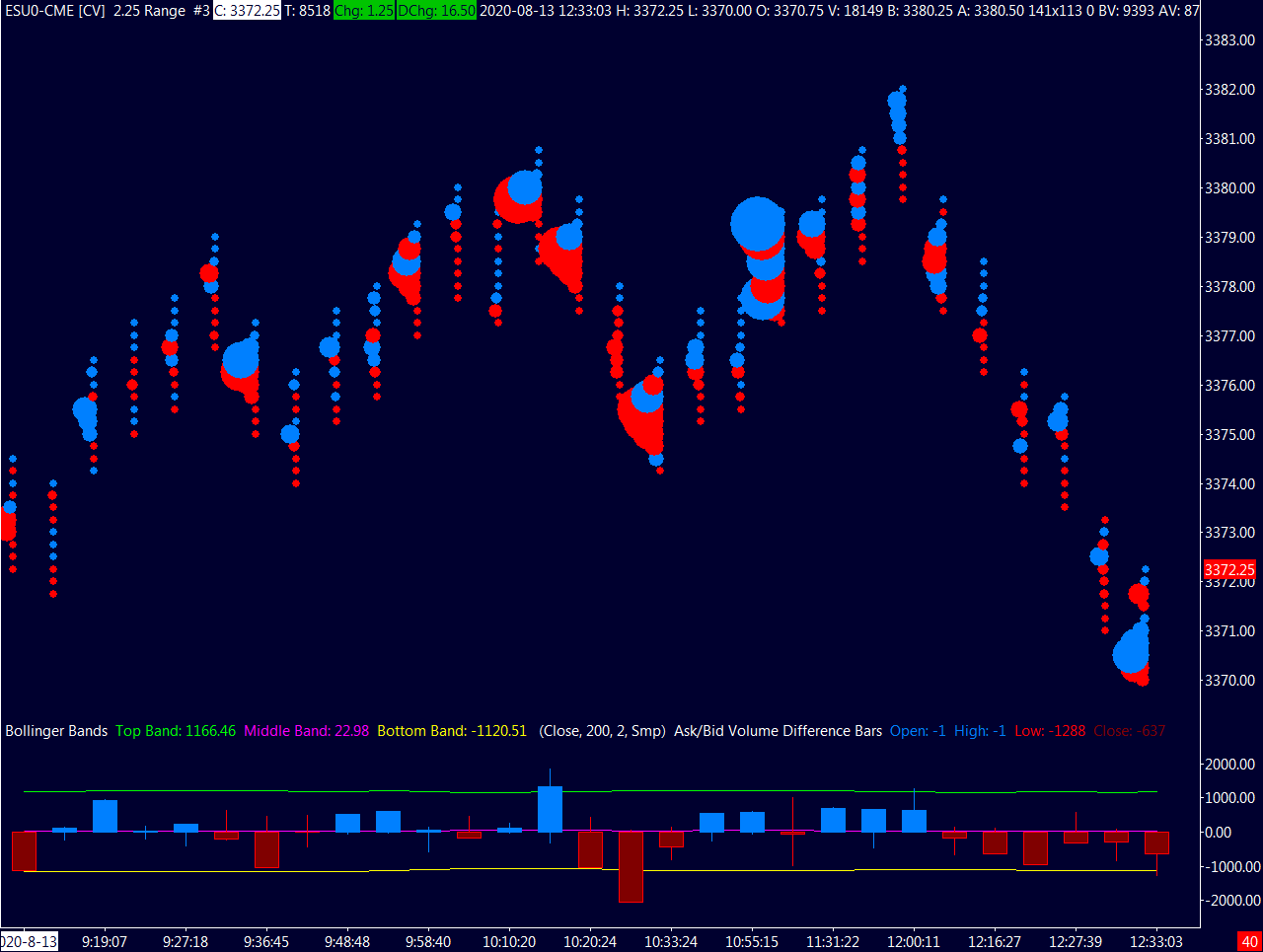 The point is that I don't need anything more that the indicator itself can do, it has simply to show a circle (I used Transparent Circle Variable Size) for all the delta (Ask volume Bid volume Difference) above a certain threshold. I generally works (it makes a circle on every delta above 300 in this case) as you can see: http://www.sierrachart.com/image.php?Image=1597685412888.png but they are not proportionate to the actual delta numbers (a higher delta doesn't make a bigger circle) Below the settings I put, don't know what can be setted wrong.. On the other hand I was able to create something similar (that is working correctly, I verified on the footprint) with the "Large volume Trade Indicator" but it plots the TOTAL VOLUME, http://www.sierrachart.com/image.php?Image=1597686367401.png could it be possible to Add ( ON THE LARGE VOLUME TRADE INDICATOR) as a Draw Mode something like "Based on Ask Bid volume Difference" ?? Thank you regards |