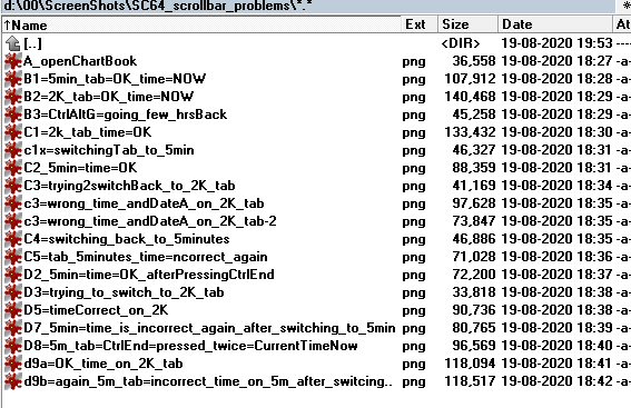Hello Support, I have certain problem with maintaining horizontal scroll position [time] when switching between charts (same chartbook). Long story short, time / horizontal scroll bar position is not maintained [seems to change randomly], when / if I switch between charts NOTE1: it ONLy happens on my "main" PC (laptop with two external monitors) My "backup" laptop seems to be OK NOTE2: if I copy a whole SierraChart folder from Backup to Main laptop [with modifying certain settings as described in your docs], it works as it should - for a while, but scroll bar starts "jumping" again [when switching between tabs] after a while. NOTE3: happens on both 32 and 64-bit versions Similar problem described here: Scroll Bar Positioning issue on current versions "I have many charts and therefore do not always notice if a chart is Inadvertently Scrolled back a little and is no longer showing the Current Time position. To avoid the problem I push the Ctrl+End buttons sometimes, which makes sure that all my charts are Scrolled to the End Position, but this is tedious and unreliable." I've attached the Chartbook with ScreenShots PS I'm not quite sure what's causing it - SierraChart was working perfectly until aboout a week or two [??] ago when it's started doing that. NOTE 4: it seems I've found what's causing it. DOC link: Working With Charts: Chart Linking Looks [to me] like statement "Link Number: For each chart that you want to link together within the same Chartbook, set this to the same nonzero number for all of those charts and Sierra Chart will use this number to link them together" is missing important thing. LINK NUMBER is NOT ChartBook - significant, but globally [?] - significant. When I've opened another ChartBook (6E, for example) with multiple charts having the SAME Link number (#1) - the Scroll Bar / time started misbehaving on the "original" ChartBook. So, looks like the statement "Chart Linking Only Works for Charts Within the Same Chartbook" is incorrect [IMHO]. Could you double-check? Please ? Sincerely, KZ Date Time Of Last Edit: 2020-08-19 12:24:31