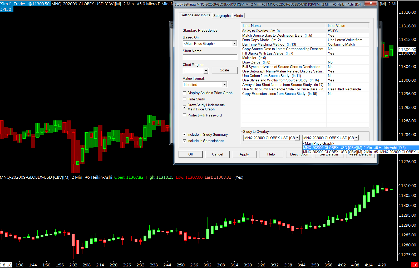 Hello SC, I would like to display Heikin Ashi candles above the chart candles, but transparently so that I can also see the chart candle below and the Heikin Ashi. How can I set this transparency for the Heikin Ashi? Yours, Bastian