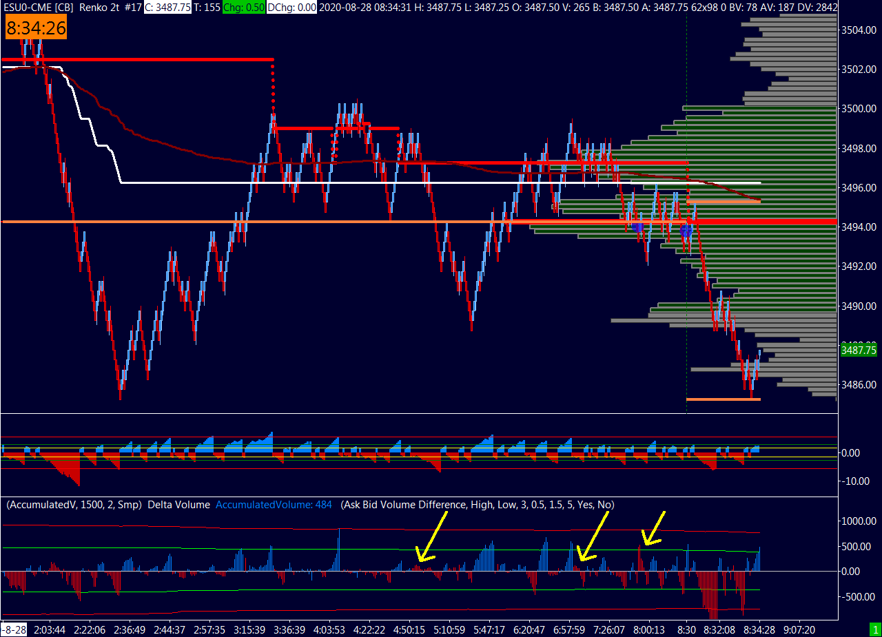 Just a little note the Zig Zag Cumulative volume (here setted on bid ask volume difference but same thing also with total volume) is calculating correctly the values but coloring is inherited by the main chart, could it be possible to correct and taking the color of the actual values of the indicator (es blue positive and red negative values)?? or there are some settings that I'm missing? This is how it plots now: http://www.sierrachart.com/image.php?Image=1598621672920.png tks regards  |