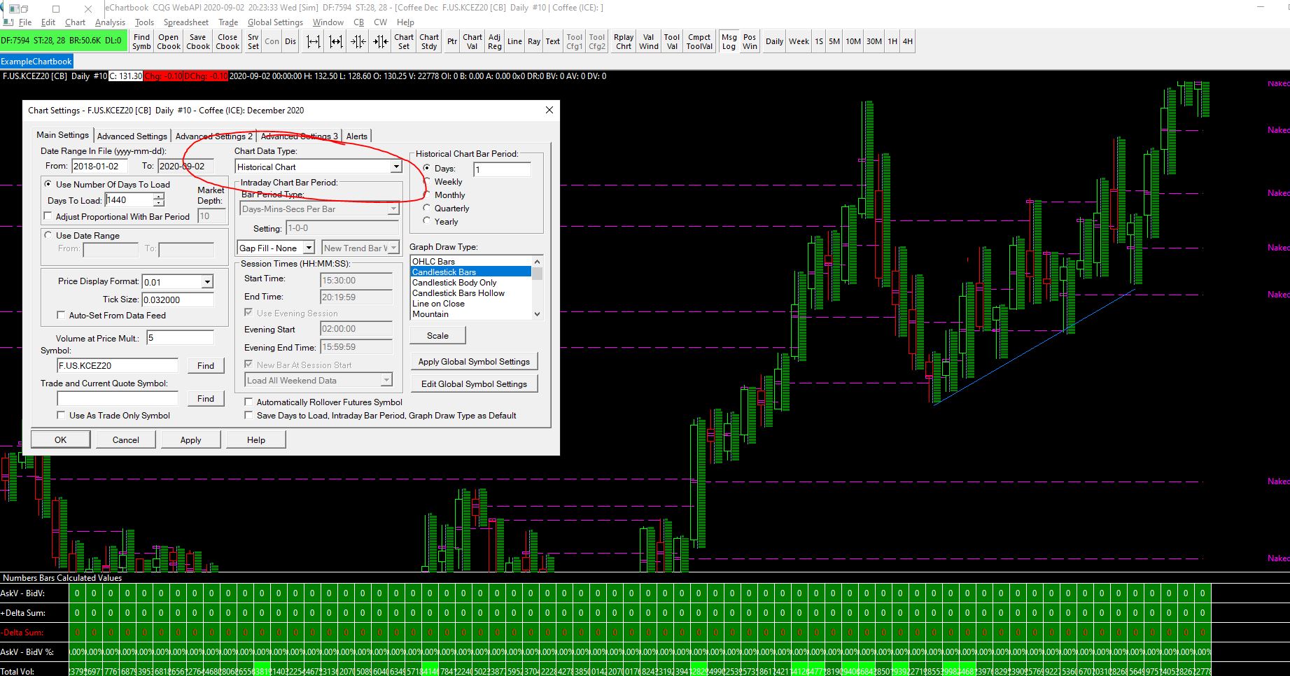 That is a Daily chart and the Numbers Bars study does not work with Daily data. Refer to the information in the Introduction section here: Numbers Bars: Introduction For the most reliable, advanced, and zero cost futures order routing, use the Teton service: Sierra Chart Teton Futures Order Routing |