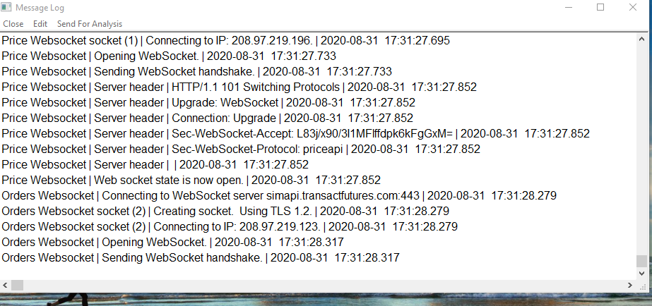 Follow the instructions here to clear the Message Log: Message Log: Clearing the Message Log Connect to the data feed with File >> Connect to Data Feed. After about 30 seconds, provide a copy of the Message Log following these instructions: Support Board Posting Information: How to Post Your Message Log (Required In Some Cases) Sierra Chart Support - Engineering Level Your definitive source for support. Other responses are from users. Try to keep your questions brief and to the point. Be aware of support policy: https://www.sierrachart.com/index.php?l=PostingInformation.php#GeneralInformation For the most reliable, advanced, and zero cost futures order routing, *change* to the Teton service: Sierra Chart Teton Futures Order Routing |