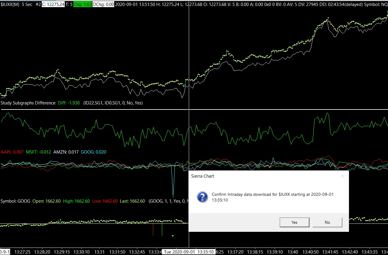 1. Yes this has been done. However, only back to January 1, 2020. We can go further back but we just went only back to this time for now. Re-download all the data in the chart by going to the chart and selecting "Edit >> Delete All Data and Download". You just need to do this once per symbol and not for each chart. 2. We did not do any filtering outside of the regular trading hours. In all cases these out of range prices are valid trades but they are trades which should not be included in Intraday charts. So, are these likely out of sequence trades as well? This is only one possibility. There are numerous trade conditions which can cause out of range values. And it is hard to know which ones to filter and which ones not to. The standard information on them is not always the best guidelines.
